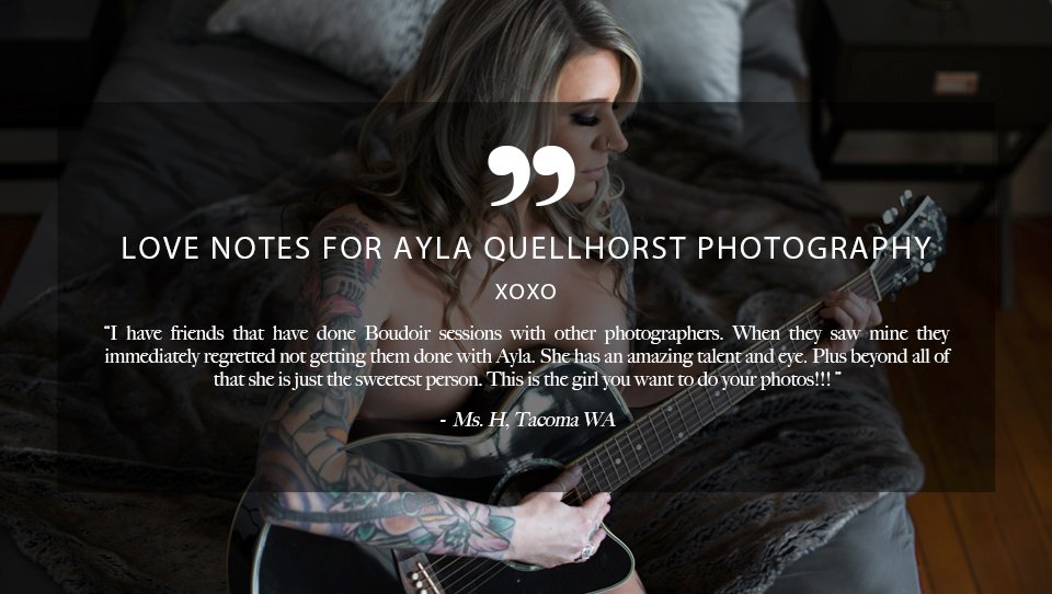 I have friends that have done Boudoir sessions with other photographers. When they saw mine they immediately regretted not getting them done with Ayla. She has an amazing talent and eye. Plus beyond all of that she is just the sweetest person. This is the girl you want to do your photos!!!